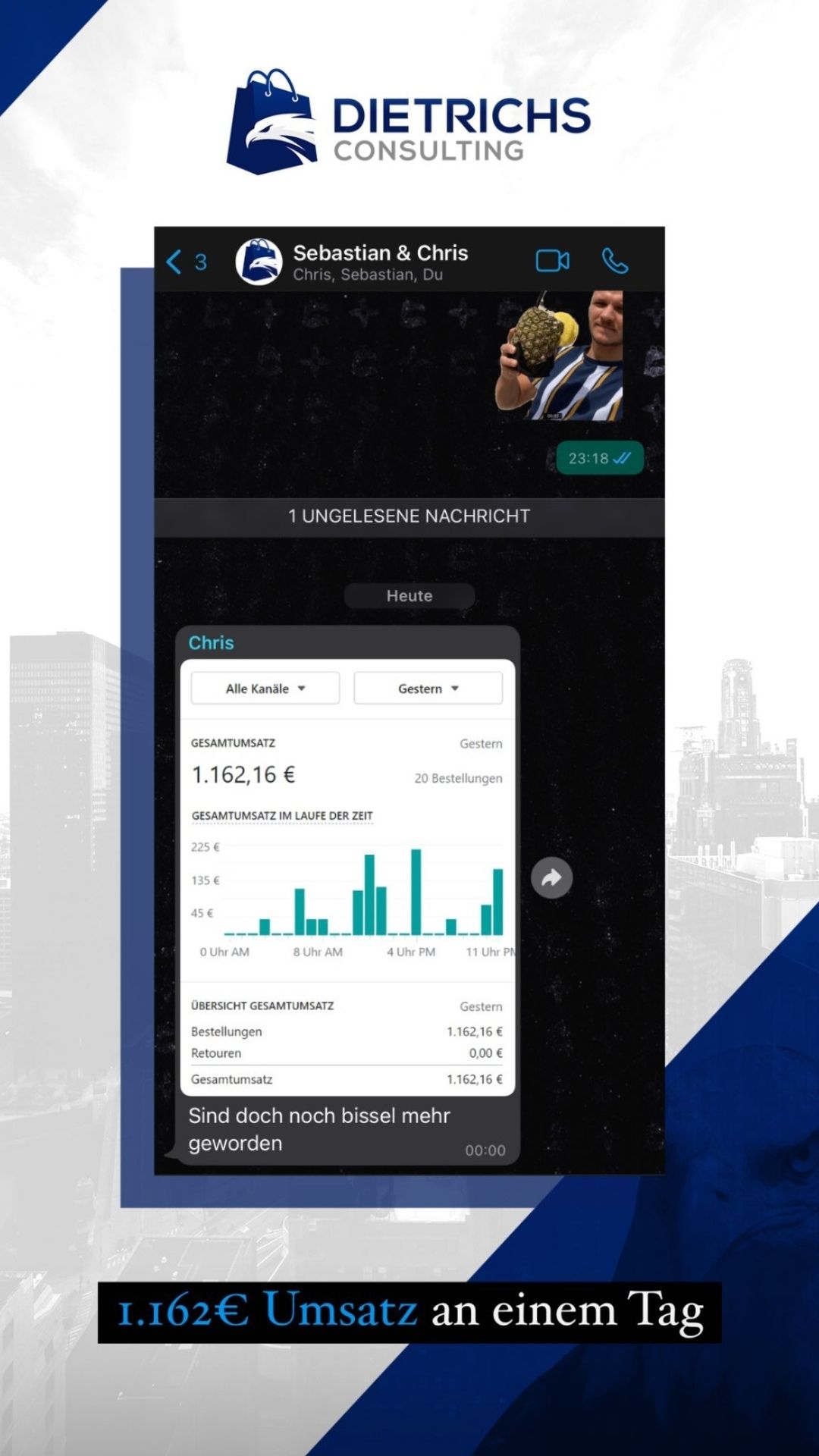 Die Ergebnisse sprechen für sich: Der beliebteste Dropshipping Podcast, die „Nulina 2 Millionen € Case Study“ und dutzende Teilnehmer, die sich ein Zusatzeinkommen aufgebaut haben, ihren Drecksjob kündigten oder auf Millionenumsätze skalieren konnten.